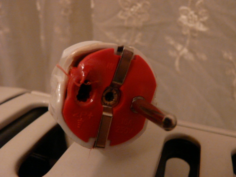Mam dwa grzejniki, które nie mogą być włączone w tym samym czasie i ponadto nie mogą być włączone na raz z czajnikiem i bojlerem. Doszłam do tego jak mi wywaliło korki kilka razy. Ponieważ moje mieszkanie mieści się w starej kamienicy, takiej z przed 100 lat, instalacja elektryczna jest na słowo honoru. Zatem całkiem nie dawno zdarzyło się, że wtyczka od jednego z grzejników (tego bardziej grzejącego) wtopiła się w gniazdko elektryczne. Teraz część tej wtyczki tkwi w gniazdku.