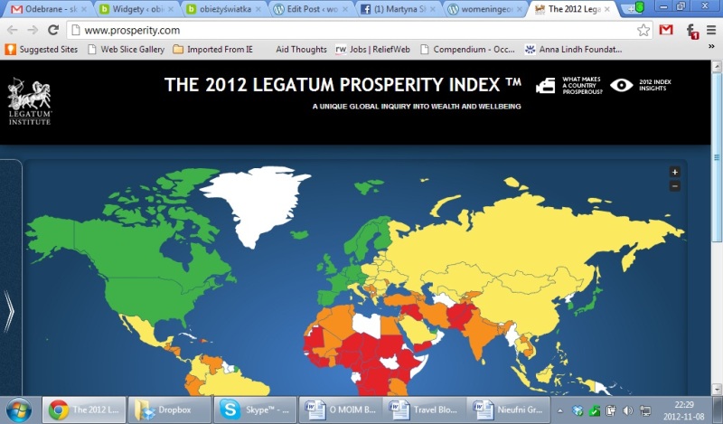 Czytam sobie ten indeks, analizuje dane i wskaźniki. Kolory stopniowo z zielonych (najlepiej oceniane) przechodzą w żółte , pomarańczowe i czerwone (najgorzej oceniane). Na tych słupkach około 40 miejsca jest jedna czerwona plama: Gruzja z jej kapitałem społecznym! Zajmuje 140 pozycje z 144 możliwych! Gorsze są tylko Togo i Benin.
